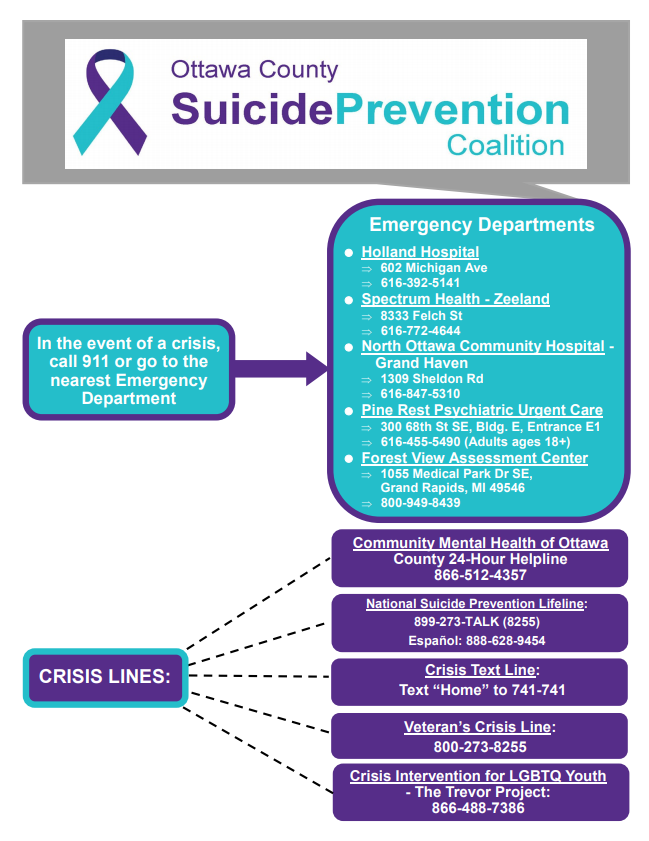Community Mental Health 24-hour Emergency Assistance - 616.842.HELP (4357)