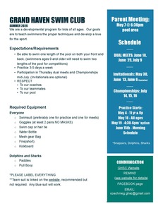 GH Swim Club 7:00 PM to 8:30 PMGH Swim ClubDate: May 5Time: 7:00 PM to 8:30 PMCalendar: Aquatic Center