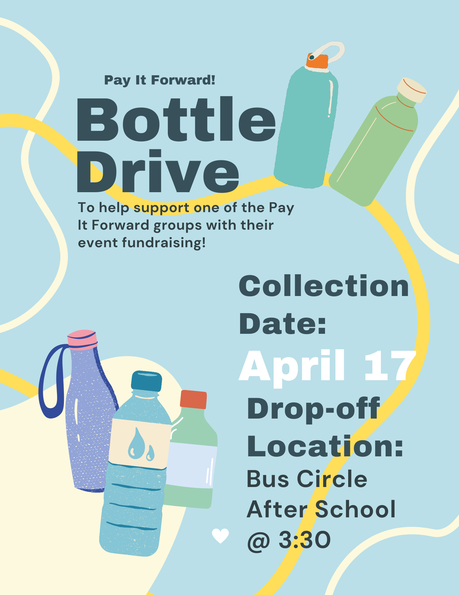 The Pay It Forward class at Grand Haven High School is raising funds to support their group fundraising events. Anyone is welcome to donate to this can/bottle drive.