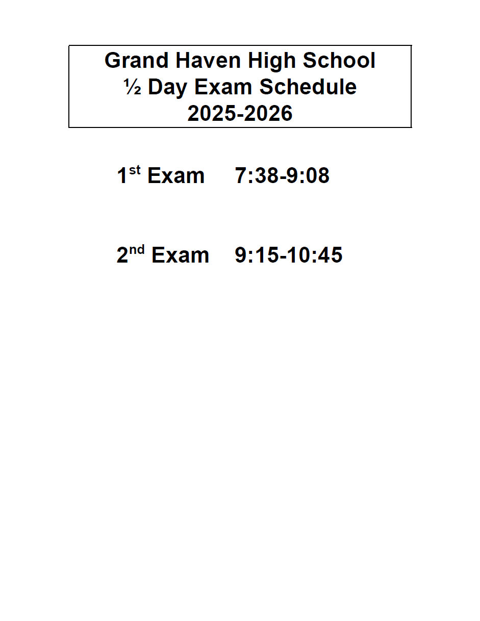 Half Day Exam Schedule